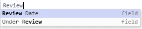 DateDiffDay(ReviewDate,Today()) It seems that the suggested field names in the expression builder are not suitable, as selecting them here will insert “[Review Date]” into the code, which does not work: