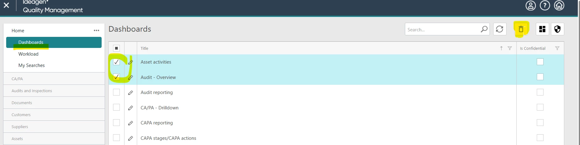 - Tick the checkbox next to the dashboard(s) you’d like to remove.