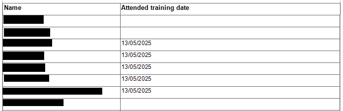 Set the filter string to whatever training event you are looking for, Iāve used COSHH as an example: