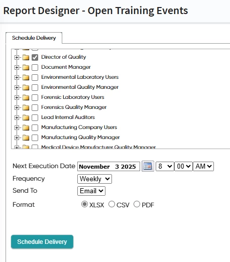 You can then set a cadence like ‘every Monday morning at 8am send an .xls file to the management group’.